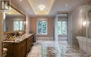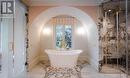 Welcome to 221 Forest Hill Road, an architectural triumph with nearly 13,000 sq ft of living space on a private 17,000 sq ft lot, nestled along the Beltline Trail in the heart of one of Toronto's most exclusive enclaves. This estate represents the pinnacle of bespoke luxury, meticulously brought to life by the city's finest: JTF Homes, Lorne Rose Architect, and Dvira Interiors. Clad in hand-selected limestone and inspired by the romance of the French countryside, the residence evokes the timeless elegance of a Provencal chateau. Arched windows with weathered-blue shutters, a stately turret, and a gracefully symmetrical facade create a striking first impression. A dramatic arcaded loggia opens onto manicured grounds and landscaping imagined by Fitzgerald and Roderick, featuring a lap pool, sports court, and lavish gardens that offer privacy and tranquility. The interiors are nothing short of breathtaking curated blend of old-world grandeur and modern refinement. The main level features soaring ceilings and a dramatic spiral staircase. Chevron-patterned white oak floors, arched passages, imported wallpaper, and tailored lighting reflect impeccable attention to detail. The formal dining room (seating 20) flows effortlessly into a statement kitchen adorned with hand-painted Portuguese tiles and custom cabinetry by Emanuele Furniture Design. The sunlit family room is anchored by a hand-carved fireplace and opens onto the gardens through elegant French doors. The crown jewel is the primary suite, a true sanctuary with vaulted ceilings, whimsical wallpaper, arched detailing, and a fireside lounge that creates a retreat-like atmosphere. The piece de resistance: a couture-inspired, two-storey dressing room with a spiral staircase and chandelier, paired with a spa-like ensuite clad in expansive stone and Shirley Wagner fixtures. The lower level features a sprawling rec room, games lounge, prep kitchen, gym, cedar sauna, and a home theatre for the ultimate cinematic escape. (id:27)